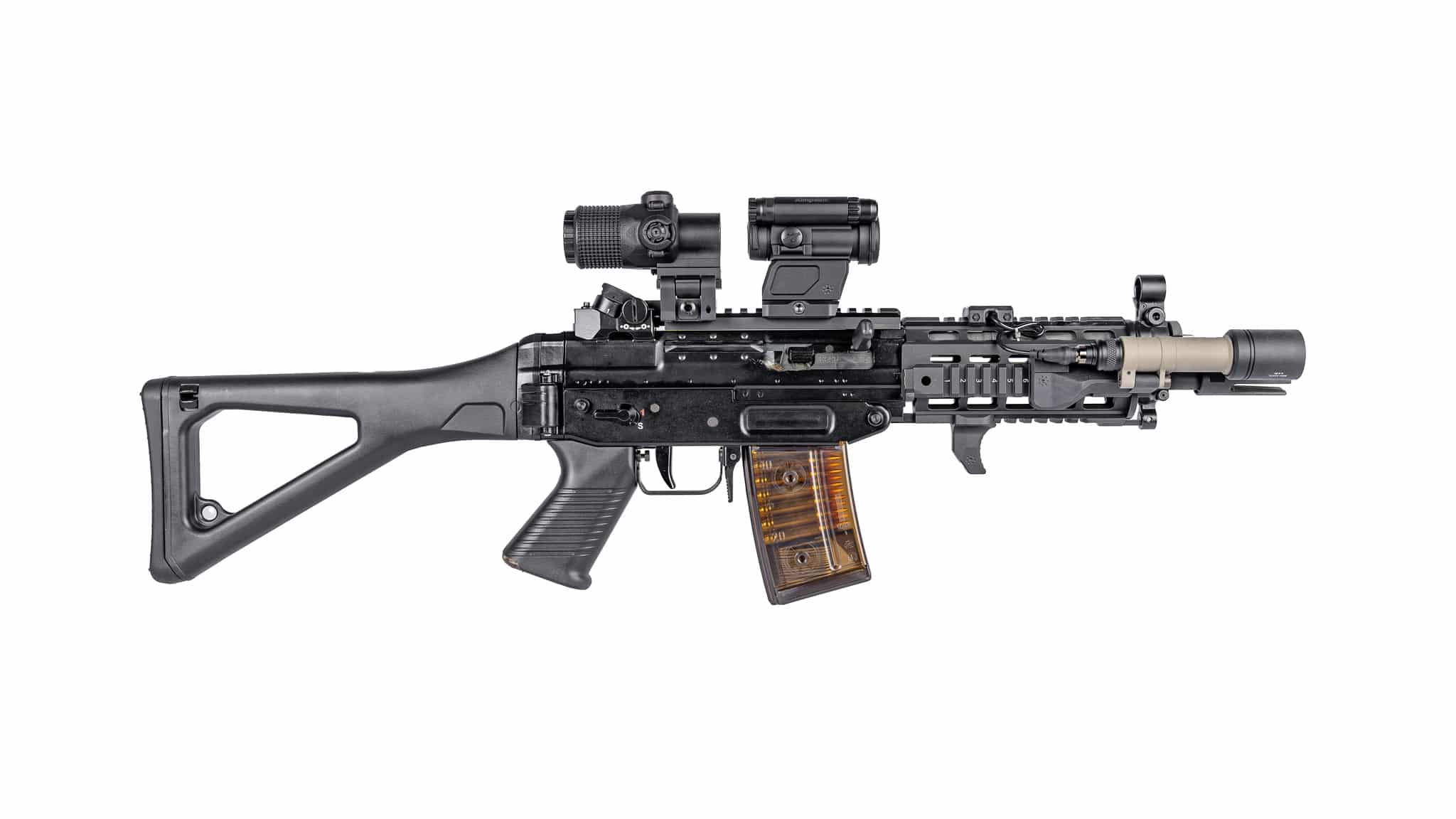 The Patented Arisaka Inline Scout Pro Mount is designed specifically for the Surefire Scout Light Pro swivel bodies. This mount is a drop-in replacement for the OEM Picatinny mount, and allows for optimal positioning with lasers, plus can be used in a cantilever fashion off the end of the handguard for less barrel or suppressor shadow. The Patent Pending design features a triangular shape that resists twisting or bending.