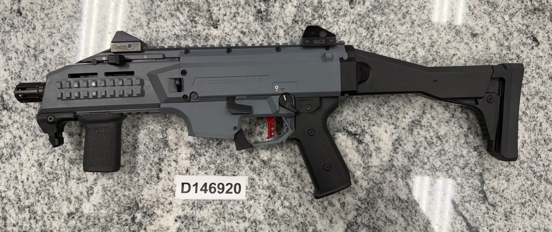 Home / Used SBR / SBS / AOW / DD / CZ SCORPION EVO 3 S1 SBR 7.75″ 9MM NO-MAG/CASE/BOX GRAY USED D146920 CZ SCORPION EVO 3 S1 SBR 7.75″ 9MM NO-MAG/CASE/BOX GRAY USED D146920$1,099.00 1 in stock [] CZ SCORPION EVO 3 S1 SBR 7.75" 9MM NO-MAG/CASE/BOX GRAY USED D146920 quantity Add to cart UPC: D146920 SKU: D146920 Category: Used SBR / SBS / AOW / DD Product ID: 47490 Description Description . Related products Out of stock DANIEL DEFENSE MK18 10.3″ 5.56 30RD 1-MAG ORIGINAL CASE MIL-SPEC BROWN SBR (NFA) USED DDM4278542 $1,999.00 Read more ROMARM/CUGIR DRACO 11.5″ 7.62X39MM SBR 1-MAG 30RD CONVERSION DONE BY CW GUN WORKS BLACK/WOOD USED DB380217RO $999.00 Add to cart IWI GALIL ACE SAR SBR 13″ 5.56 1-MAG ORIGINAL BOX BLACK USED G2027714 $1,999.00 Add to cart HK SP5 9MM 8.85″ SBR 2-MAGS 30+1 ORIGINAL CASE GERMAN STOCK BLACK USED 271-013308 $2,899.00 Add to cart