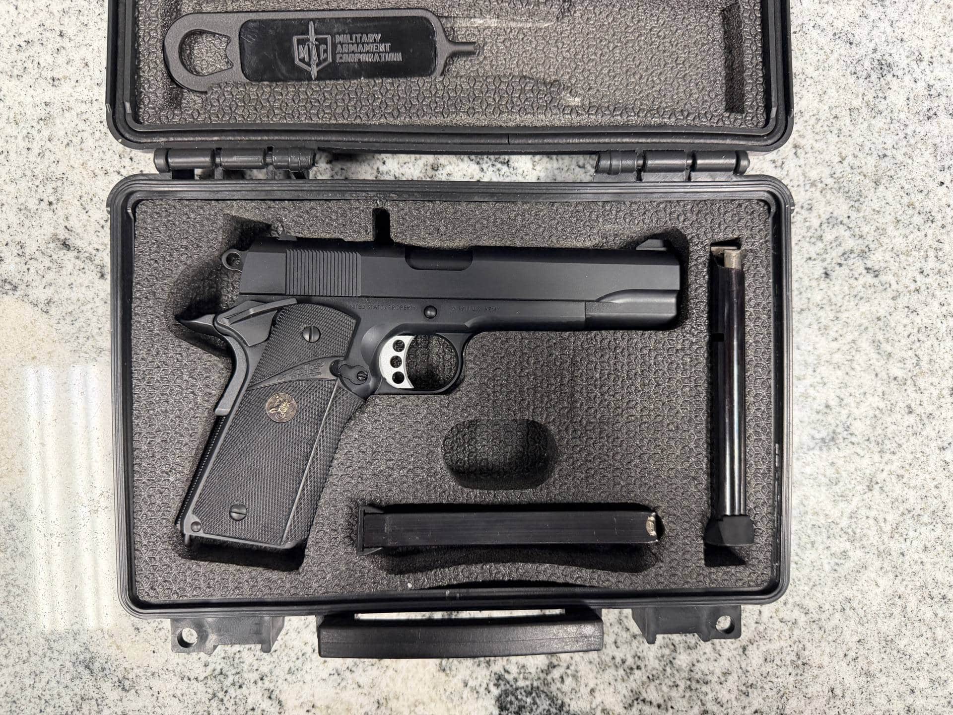 Home / Used Fireams / MILITARY ARMAMENT CORP M1911 US ARMY MEUSOC 45 ACP 5″ 8+1 2-MAGS ORIGINAL CASE BLACK USED T0620-25Z17425 MILITARY ARMAMENT CORP M1911 US ARMY MEUSOC 45 ACP 5″ 8+1 2-MAGS ORIGINAL CASE BLACK USED T0620-25Z17425$449.00 1 in stock [{"type":"checkbox-group","required":true,"name":"checkbox-group-1656342078656-0","values":[{"label":"I understand this product MUST BE SHIPPED TO AN FFL\/SOT. PLEASE SUBMIT FFL INFO to ockie@gerbranddefense.com","value":"","uid":"04bbfbcf4614b","selected":false}]}] MILITARY ARMAMENT CORP M1911 US ARMY MEUSOC 45 ACP 5" 8+1 2-MAGS ORIGINAL CASE BLACK USED T0620-25Z17425 quantity Add to cart UPC: T0620-25Z17425 SKU: T0620-25Z17425 Category: Used Fireams Product ID: 46759 Description Description . Related products Out of stock IWI GALIL ACE SAR 7.62X39MM RIFLE 16″ GEN1 1-MAG 30RD ORIGINAL BOX BLACK USED G0003954 $1,799.00 Read more SIG SAUER P320 CUSTOM 4.7″ 9MM 2-MAGS 21+1 NORSSO OPTICS SLIDE AXG HOUSING SIG GOLD FCU NO-CASE/BOX EXTRA WHITE MODULE BLACK USED FCU001538 $1,099.00 Add to cart Out of stock COLT MATCH SPORTER HBAR .223 20″ PREBAN W/ CASE AND 3-40RD MAGS BIPOD SLING USED BLACK MH044356 $1,699.00 Read more SIG SAUER P238 EQUINOX 2.7″ 380 AUTO 7+1 3-MAGS BLACK/SILVER USED 27A226250 $699.00 Add to cart