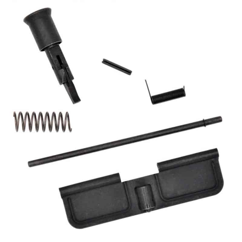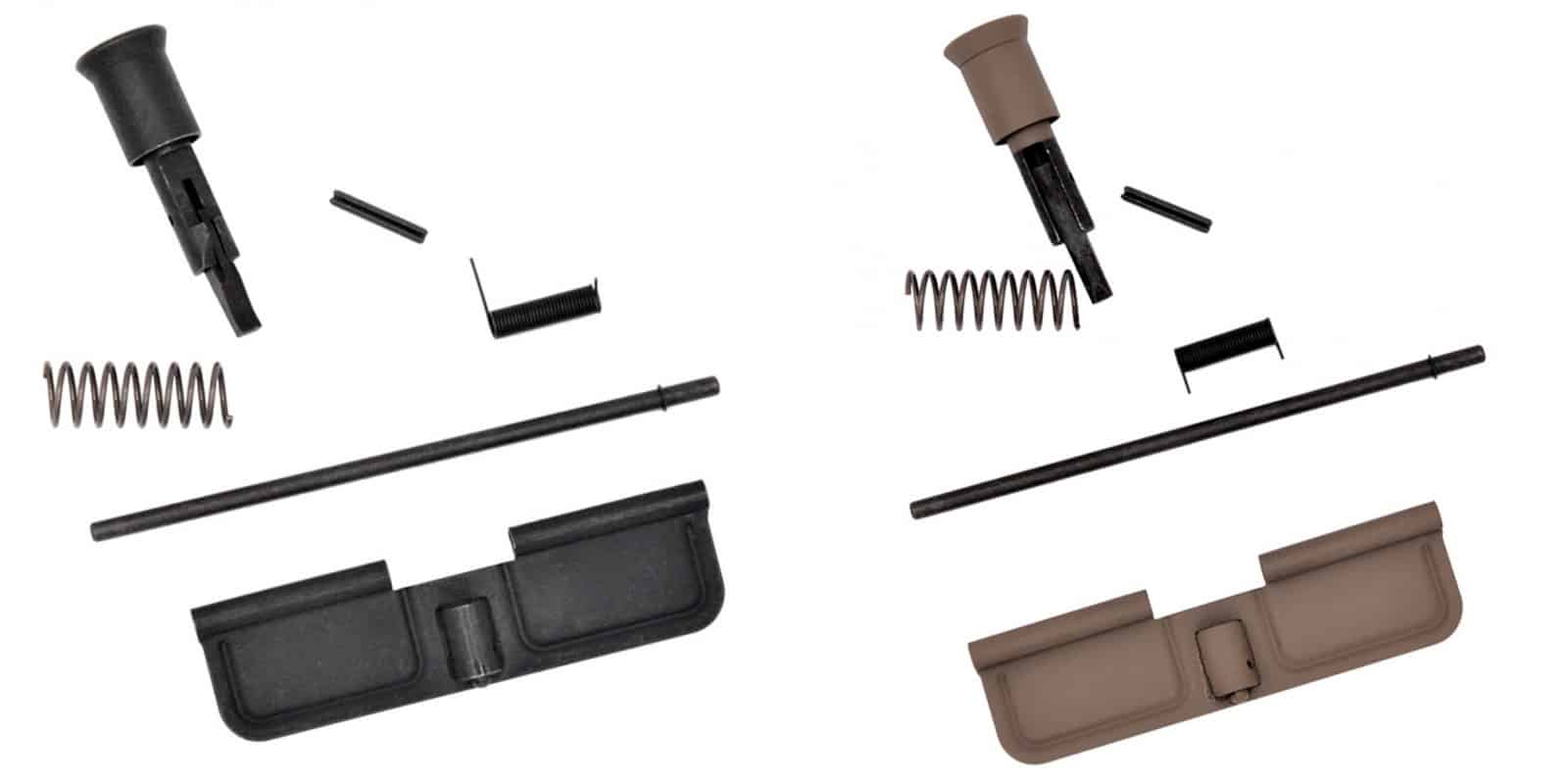 The upper receiver kits consist of: Ejection Port Door Cover, Ejection Port Cover Pin, C-Clip Ejection port cover pin, Ejection Port Spring, Forward Assist, Forward Assist Spring and retaining Roll Pin. Available in Black and FDE finishes.