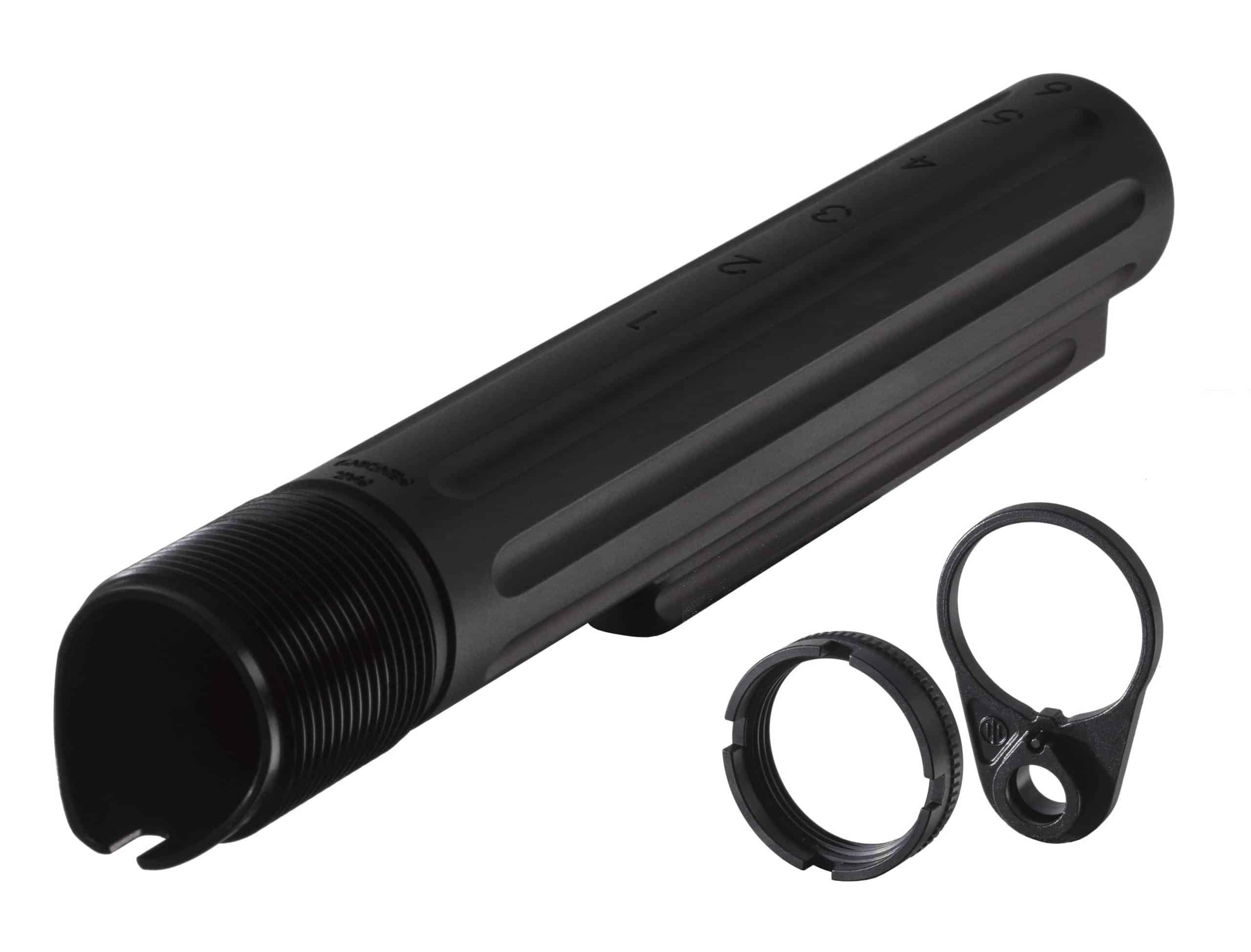 Designed with an extended carrier support lip for smoother cycling, it includes lightening cuts that shave approximately 1 oz off compared to standard mil-spec tubes. Its unique fluted design aids in debris clearing, providing extra reliability in tough environments.