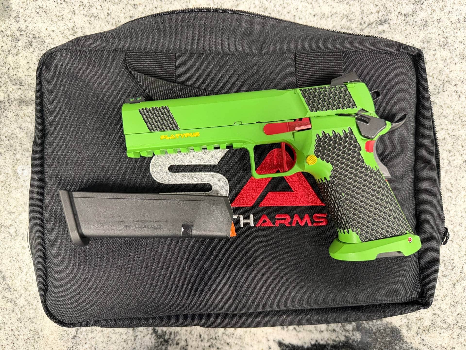 Home / Used Fireams / SEALTH ARMS PLATYPUS 17 GOVERNMENT 1911 5″ 2-MAGS 17+1 ORIGINAL CASE LIME GREEN CUSTOM 2607012502 SEALTH ARMS PLATYPUS 17 GOVERNMENT 1911 5″ 2-MAGS 17+1 ORIGINAL CASE LIME GREEN CUSTOM 2607012502$1,999.00 1 in stock [] SEALTH ARMS PLATYPUS 17 GOVERNMENT 1911 5" 2-MAGS 17+1 ORIGINAL CASE LIME GREEN CUSTOM 2607012502 quantity Add to cart UPC: 2607012502 SKU: 2607012502 Category: Used Fireams Product ID: 47413 Description Description . Related products COOPER FIREARMS MODEL 22R .22-250 26″ CUSTOM CERAKOTE W/ CASE AND PAPERS FDE USED CF38435 $2,299.00 Add to cart Out of stock BRAVO COMPANY BCM BCM4 RIFLE 5.56 16.25″ PINNED NO-CASE/MAG/BOX BLACK USED A113095 $999.00 Read more REMINGTON 700 SENDERO FLUTED 28″ 22-250 REM W/ MAGNA PORTING NO CASE USED S6250096 $2,499.00 Add to cart Out of stock SIG SAUER AG 553P 300BLK PISTOL 12″ 1-MAG ORIGINAL CASE LIKE NEW SAN IMPORTS BLACK USED 300-0159 $5,499.00 Original price was: $5,499.00.$3,000.00Current price is: $3,000.00. Read more