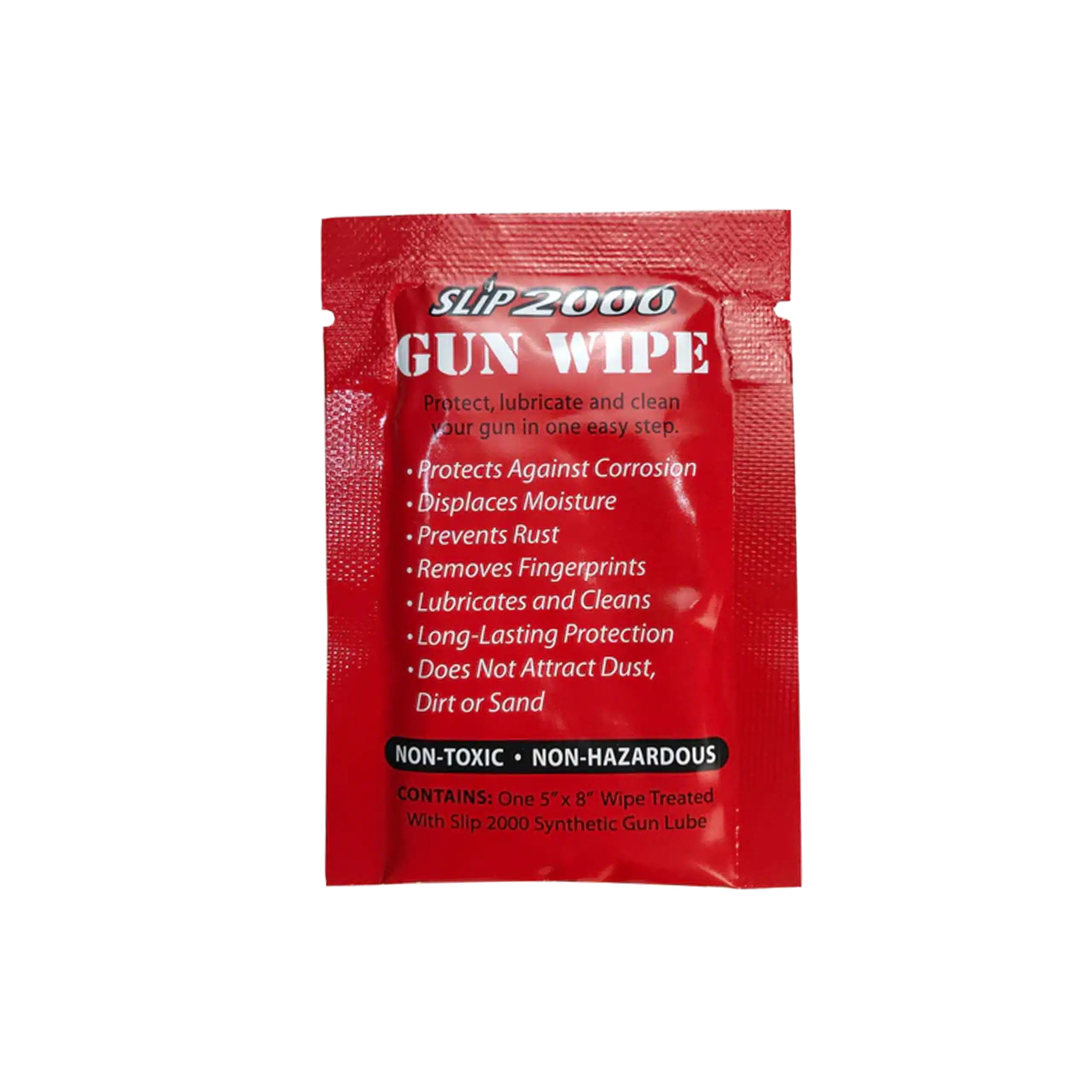Each Slip 2000 Gun Wipe packet contains one 5″ x 8″ wipe treated with Slip 2000 Synthetic Gun Lube.